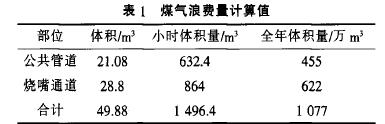 煤氣浪費(fèi)量計(jì)算值見表1。