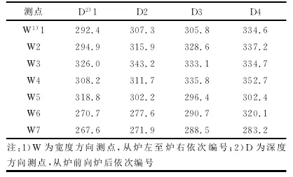 SCR反應(yīng)器出口截面NOx質(zhì)量濃度沿寬度方向均呈階梯形分布:靠反應(yīng)器中心線區(qū)域NOx質(zhì)量濃度偏高,靠反應(yīng)器外側(cè)墻區(qū)域NOx質(zhì)量濃度偏低,見表2。