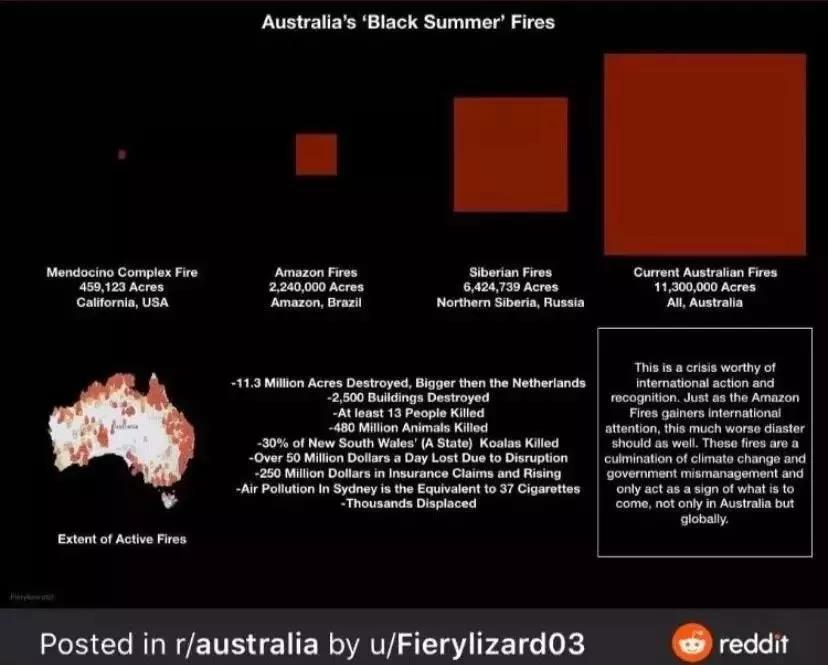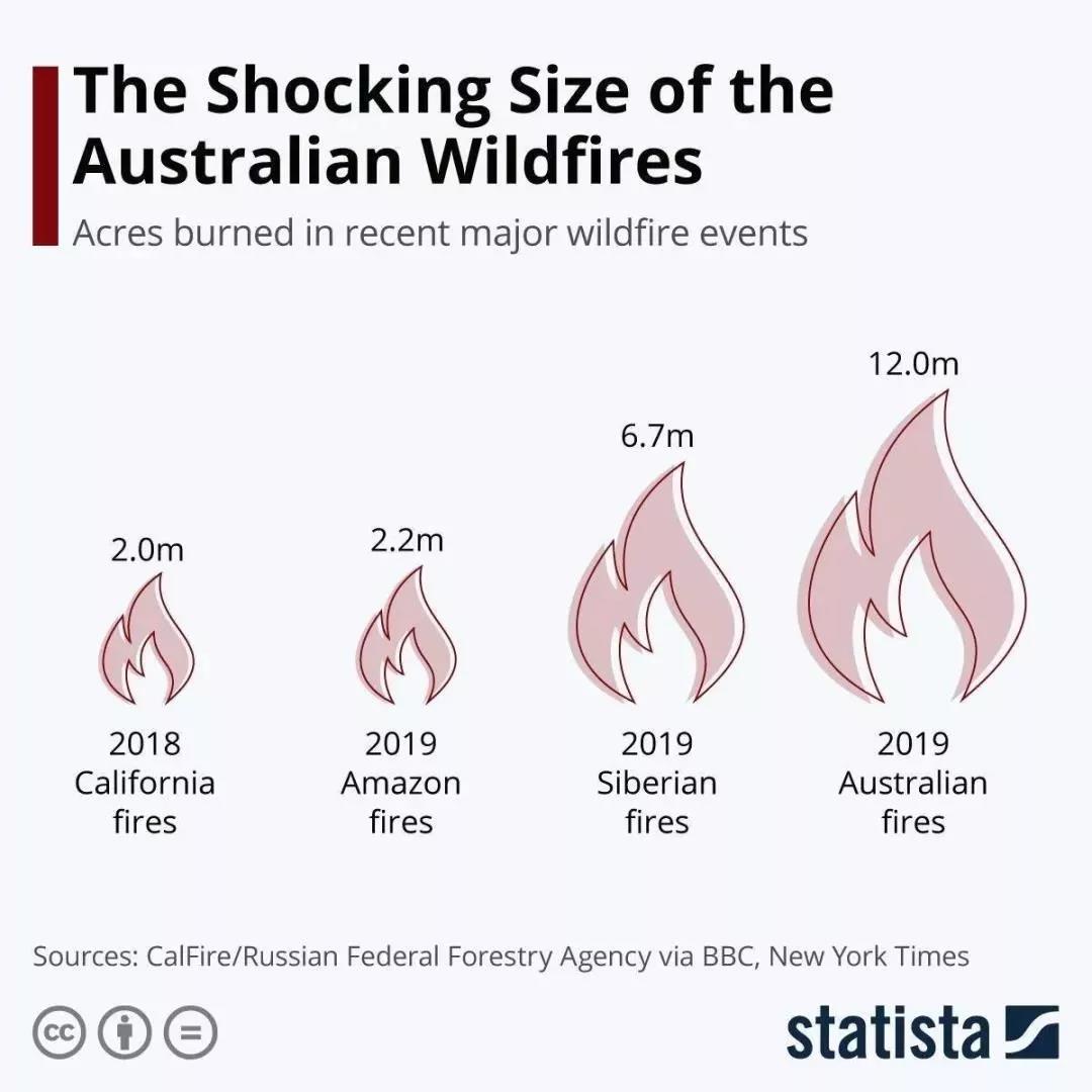 6倍于加州大火,近6倍于亞馬遜大火,近2倍于西伯利亞大火,這就是本次澳洲山火的可怕。