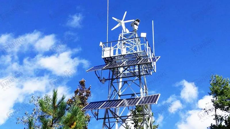 目前森林防火監(jiān)控系統(tǒng)采取的最優(yōu)供電方式是風(fēng)光互補太陽能離網(wǎng)供電系統(tǒng),無需人工巡檢,干凈,無污染。