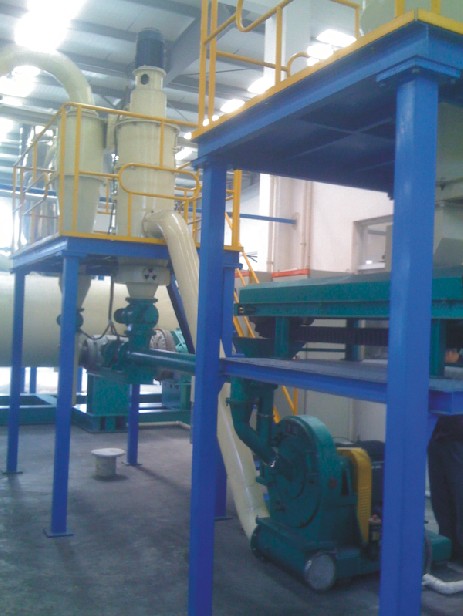 上海依路引進(jìn)國(guó)內(nèi)外先進(jìn)技術(shù)研制的一種SBS超微加工設(shè)備,可把常規(guī)的SBS顆粒加工粉碎細(xì)度為120目以上的超微SBS粉體,通過(guò)風(fēng)送系統(tǒng)或螺旋式輸送機(jī)加入改性瀝青設(shè)備的配料系統(tǒng)進(jìn)行改性瀝青生產(chǎn)。這種新型工藝流程即把干法加工與濕法加工結(jié)合起來(lái),干法加工即把SBS通過(guò)機(jī)械粉碎加工成超微粉體;濕法加工即采用常規(guī)的改性瀝青生產(chǎn)工藝,把超微SBS粉體加入熱瀝青中通過(guò)攪拌、混合、融脹,再進(jìn)入膠體磨或高速剪切機(jī)進(jìn)行剪切、研磨加工出合格成品,但其濕法加工的溫度較低(<160℃),主機(jī)加工的細(xì)度要求相對(duì)較低,必要時(shí)根據(jù)不同混合料的級(jí)配要求通過(guò)取樣閥取樣化驗(yàn),如檢測(cè)合格可以不通過(guò)主機(jī)系統(tǒng)加工,通過(guò)旁路直接進(jìn)入SBS改性瀝青成品罐。