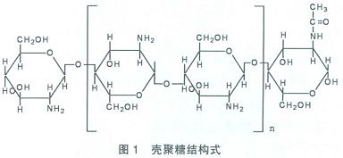 殼聚糖(chitosan)結(jié)構(gòu)式見圖1,是一種白色無定型、半透明的片狀固體,難溶于水但溶于酸,為甲殼素的脫乙酰化產(chǎn)物。一般而言,甲殼素中的N-乙?;撊?5%以上就可稱之為殼聚糖。甲殼素是動物、昆蟲的外骨骼的主要成分,是地球上存在的數(shù)量僅次于纖維素的第2大天然有機化合物。殼聚糖作為絮凝劑,具有天然、無毒、可降解的性質(zhì)。殼聚糖的大分子鏈上分布著許多羥基、氨基及一些N-乙酰氨基,可在酸性溶液中形成高電荷密度的陽離子聚電解質(zhì),也可借助氫鍵或離子鍵來形成類似網(wǎng)狀結(jié)構(gòu)的籠形分子,從而絡(luò)合去除許多有毒有害的重金屬離子。殼聚糖及其衍生物有著廣泛的用途,不僅在紡織、印染、造紙、醫(yī)藥、食品、化工、生物和農(nóng)業(yè)等眾多領(lǐng)域具有許多應(yīng)用價值,而且在水處理方面,可用作吸附劑、絮凝劑、殺菌劑、離子交換劑、膜制劑等。由于其在給水應(yīng)用和水處理中顯示了獨特的優(yōu)越性,美國環(huán)保局已批準殼聚糖作為飲用水的凈化劑。