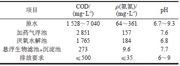 采用調(diào)節(jié)池- 加藥氣浮池- 厭氧水解池- 懸浮生物濾池- 沉淀池組合工藝成功處理了紡織印染助劑生產(chǎn)廢水,各項(xiàng)指標(biāo)均達(dá)到排入管網(wǎng)的標(biāo)準(zhǔn)。