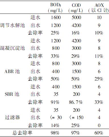 綜上分析,本項目采用水解酸化+混凝沉淀+離子氧化+ABR+SBR的組合處理工藝,其對環(huán)氧氯丙烷,二氯甲烷,AOX等有較好的去除效率,總的去除效率達60%以上。
