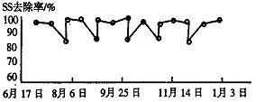 循環(huán)冷卻水對懸浮物的水質要求較高,sS是中水處理效果的主要評價指標。因此,對ss的監(jiān)測分析比較重要。圖4為中水處理工藝對SS去除率的曲線圖。