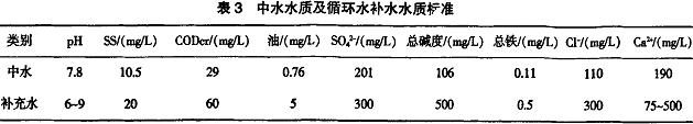 通過處理后的中水與循環(huán)冷卻水補水比較,表明中水水質符合回用循環(huán)水的水質標準,可替代新鮮水作為循環(huán)冷卻水的補水,但因循環(huán)水運行有其特殊性。須采取必要的技術措施。