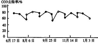 從圖4可以看出.sS的去除率大都穩(wěn)定在95%左右.這表明原水經過混凝沉淀、過濾等處理工藝后,水中的懸浮物含量得到明顯的去除。但因鋼鐵企業(yè)每月會安排一次計劃檢修,勢必造成污水水質惡化。給處理工藝還是帶來一定的沖擊影響,這是圖4中每月SS處理率較低的原因(最低時僅為85%左右)。