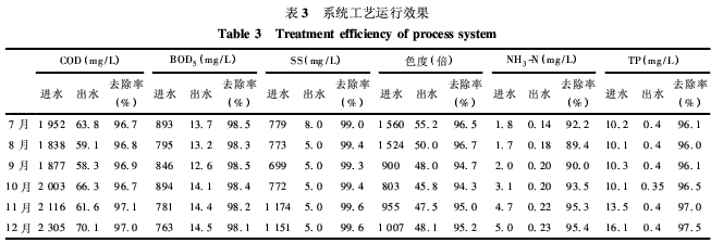 (1)本系統(tǒng)工藝適合處理進(jìn)水量大、COD負(fù)荷高、成分復(fù)雜等特點(diǎn)的綜合印染廢水,可有效去除COD、SS和色度等污染物。按日處理量4×104 m3、COD去除率96%估算,此系統(tǒng)工藝一年可削減COD排放約28.6萬(wàn)t,對(duì)周邊河道水質(zhì)環(huán)境改善有明顯的改善作用。對(duì)BOD5、SS和色度去除率可分別達(dá)98.4%、98.6%和92.8%以上,出水水質(zhì)指標(biāo)穩(wěn)定達(dá)到GB8978-1996一級(jí)標(biāo)準(zhǔn)。