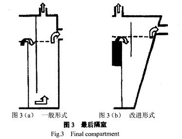 最后一個隔室,一般選用如圖3所示的結(jié)構(gòu)即可,如果擬處理的廢水污泥沉降性能較差,可選用圖3(b)所示的結(jié)構(gòu),以減少污泥流失。
