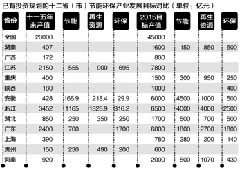 從《錦標賽》歸納的信息看,從2009年11月到今年2月,湖南、廣西、江蘇、重慶、山西、安徽、浙江、湖北、廣東、上海、貴州和河南先后發(fā)布了地方版的節(jié)能環(huán)保產(chǎn)業(yè)規(guī)劃。該報告預計地方十二五產(chǎn)值目標將大幅超越國家規(guī)劃目標。