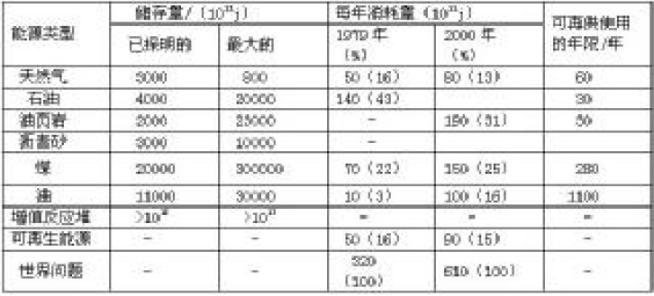 表1各類(lèi)型能源、消耗以及可再供使用的年限的預(yù)測(cè)值