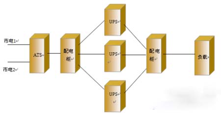 如果改用圖10的方案,采用1+2結(jié)構(gòu)模式,這里雖多了一臺UPS,但卻少了兩臺變壓器和兩臺STS,要知道一臺STS要比同容量的UPS貴得多。而且第三臺UPS的引入,不但使系統(tǒng)可靠性大為增加,而且也是系統(tǒng)的過載能力又增加了一倍。