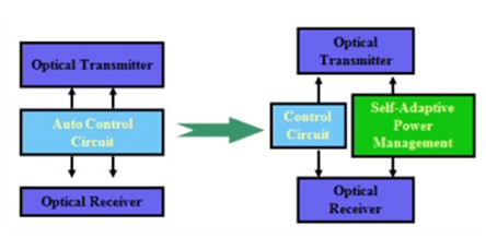 光模塊主要通過采用自適應(yīng)電源管理技術(shù),對(duì)模塊關(guān)鍵功耗芯片的工作狀態(tài)進(jìn)行動(dòng)態(tài)調(diào)節(jié),能有效降低處于待機(jī)狀態(tài)模塊的功耗最大可達(dá)60%。