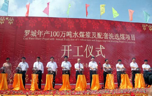 廣西目前最大的煤炭深加工環(huán)保項(xiàng)目、河池市最大的節(jié)能減排項(xiàng)目——年產(chǎn)100萬(wàn)噸水煤漿及配套選洗煤項(xiàng)目,8月27日在河池市羅城仫佬族自治縣舉行開工儀式。