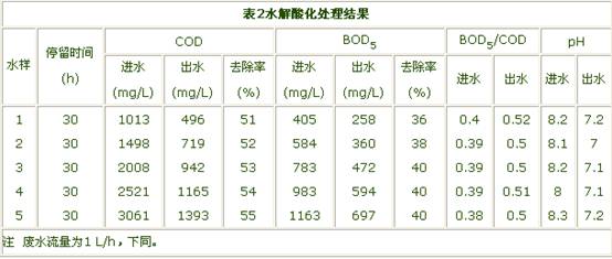 ?、俳?jīng)厭氧水解酸化處理后,含季銨鹽廢水的BOD5/COD比值可提高到0.51左右,證實了水解酸化可提高該廢水的可生化性。