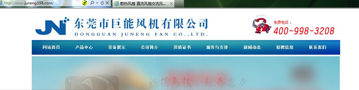 2014年7月26日,東莞市巨能風機有限公司免費400電話正式開通:400-998-3208