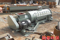 生石灰消化器典型系統(tǒng)主要由箱體、傳動(dòng)機(jī)構(gòu)、攪拌機(jī)構(gòu)和加水裝置組成,箱體上設(shè)置有進(jìn)料口和出料口,攪拌機(jī)構(gòu)通過(guò)軸承座可轉(zhuǎn)動(dòng)安裝在箱體內(nèi),并與傳動(dòng)機(jī)構(gòu)相連,在其傳動(dòng)機(jī)構(gòu)的驅(qū)動(dòng)下轉(zhuǎn)動(dòng);其加水裝置一端伸入到所述箱體內(nèi),另一端與水源相接,并根據(jù)待攪拌料重量來(lái)調(diào)節(jié)向攪拌料的給水量。