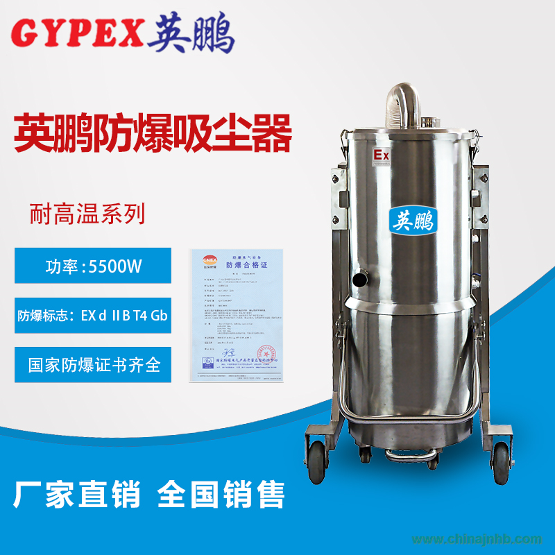 英鵬防爆吸塵器系列采用二級粉塵區(qū)域防爆設(shè)計,防護(hù)等級IP56,防爆等級Ex d ⅡB T4 Gb。