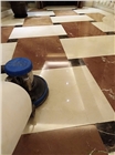 4、使石材表面結(jié)成高光晶面后,用吸水機(jī)吸掉地面殘留糊狀物。 5、用拋光墊拋光,使地面完全干燥光亮如鏡。